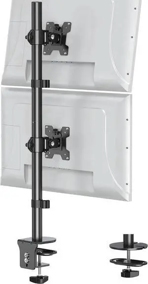 Vertical Dual Monitor Stand, Stacked Monitor Mount for 2 Screen Max 32 inches, Computer Monitor Arm Holds up to 17.6 lbs Each, Height Adjustable, Swivel, Tilt Monitor Desk Mount, VESA 75/100