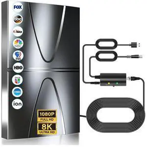3200+ Miles TV Antenna Indoor, 360° Reception Digital Antenna for Smart TV and Old TVs, HD Antenna for Local Channels with Amplifier Signal Booster Support 4K 8K 1080p -38ft Thick Coaxial Cable