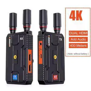 4K 400M/1300FT DUAL Outputs Wireless Video Transmitter and Receiver for Outdoor Events Football Live Streaming Indoor Pass Wall