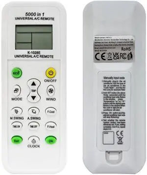 Universal AC Remote Control, 5000-in-1 Multi-Brand Compatible, K-1028E Model, LCD Display