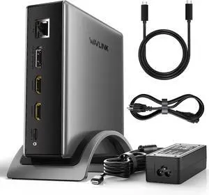 USB C Docking Station 3 Monitors, 18-in-1 Triple 4K Display, 150W Power Adapter with 20W Fast Charging, 8 USB Ports up to 10Gbps, 2 HDMI/DP/USB C, for Windows/Chrome OS