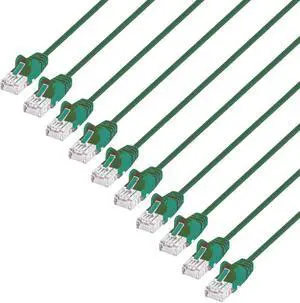 Intellinet Slim Cat6 Ethernet Network Patch Cable - 10-Pack - 10Gbps & 250MHz Snagless Boot 30AWG Pure Bare Copper Wire Gold-Plated Contacts Lifetime Mfg Warranty - 14ft 10 Pack Green