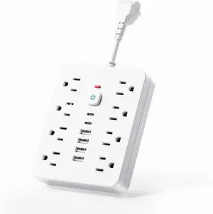 Power Strip Surge Protector, Olcorife Ultra Thin Flat Plug Extension Cord 5ft, 6 Outlets 3 USB Ports(1 USB C), 3 Sided Outlet Extender for Home Office Travel Dorm Room Essentials, White