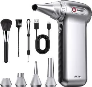 Rechargeae Coressed Air Duster for Couter - Electric Portae Air Duster for PC, Cordless Air ower Speed Adjustae with Scroll Wheel, Air Duster for Keyboard, Car, se and Outdoor Cleaning