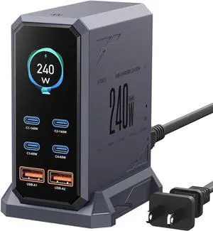 240W USB C Charger Block, 6 Ports USB Charging Station,GaN 140W PD3.1 Laptop Fast Charger Adapter Desktop Charger Station with LCD Display for MacBook HP iPad iPhone Samsung