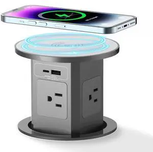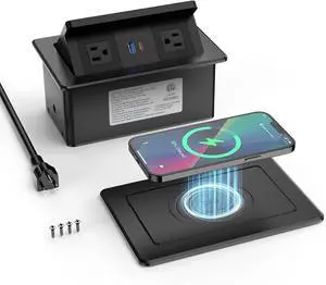 Pop up Power Outlet with 15W Wireless Charger, Recessed Strip USB-C PD 20W, 2 Outlets, Desk Charging Station for Conference Room Kitchen Countertop, ETL Listed