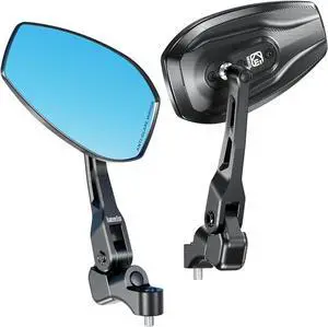 Aluminum Alloy Rainproof Motorcycle Bar End Mirrors, CNC Machined Anti-Glare Blue Lenses Motorcycle Rear View Mirrors, Foldable Multi-Angle Adjustable Fit for 12-18mm Handlebar Inner Diameter