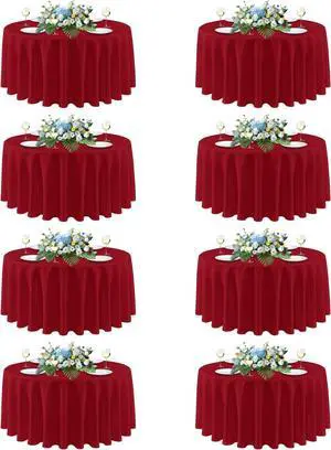 Christmas Red 90 Inch Round Tablecloth, 8 Pack - Circle Polyester Fabric Table Cloth for Wedding Party Reception Banquet Birthday, Washable Formal Table Cover (Fit 30-72 Inch Tables)