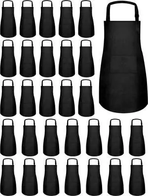 36 Pack Bib Aprons Bulk Plain Aprons for Man Woman Adult Unisex Apron Machine Washable Adjustable Bib Apron(Black)