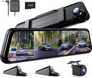 360 Degree View 4 Channel Mirror Dash Cam Detached Camera for CarsDash Cam Front and Rear Side(Left,Right),12'' Rear View Mirror Camera FHD1080Px4Night Vision,GPS,Parking Monitor,Free 128GB Card