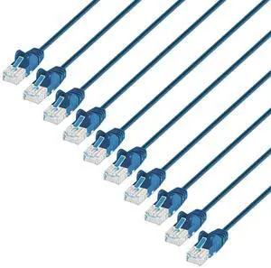 Intellinet Slim Cat6 Ethernet Network Patch Cable - 10-Pack - 10Gbps & 250MHz Snagless Boot 30AWG Pure Bare Copper Wire Gold-Plated Contacts Lifetime Mfg Warranty - 0.5ft 10 Pack Blue
