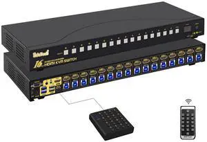 16x1 HDMI KVM Switch with USB 3.0 HUB, 16 in 1 Out 4K HDMI Switcher with 4K 60Hz Resolution, Rack Mount KVM Switch Support HDCP, EDID, Hotkey Mouse Switching for Linux, Windows, Mac, Unix