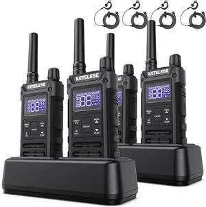 KP01 Professional/Business Walkie Talkies, Programmable Walkie Talkies with Earpiece, Rechargeable, Two-Way Radio Set, for Camping Hiking Skiing(2 Pack), Black