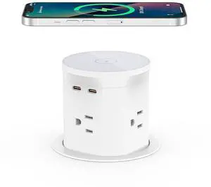 Pop up Power Outlet with 15W Wireless Charger, Recessed Strip USB-C PD 20W, 2 Outlets, Desk Charging Station for Conference Room Kitchen Countertop, ETL Listed