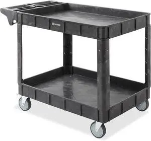2 Shelf Heavy Duty Plastic Utility Cart, Service Cart Tub Storage W/Deep Shelve Holds up to 1000 lbs, Rolling Utility Cart with 360°Swivel Wheels, Work Cart for Warehouse, Garage, Cleaning