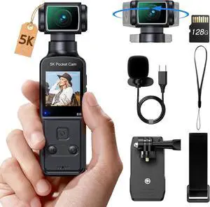 Body Camera 5K with External Microphone, Mini Video & Audio Pocket Cam 270° Rotation Camera for Outdoor Sport, Bike, Travel, Police Law Enforcement, Personal Civilians, 128GB Included