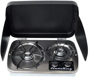 Flame King YSNHT600 2-Burner Built-in RV Cooktop Propane Stove 7200 and 5200 BTU Burners Self-Igniting Cover Included Silver 18.5"" x 13"" x 4.5""