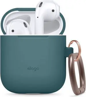 Elago Silicone Case With Keychain Compatible With Apple Airpods Case 1 & 2, Front Led Visible, Supports Wireless Charging, Protective Silicone [Dark Turquoise]