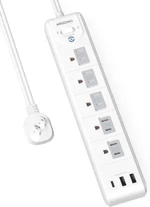 2 Prong Power Strip, WRXDMC 2 Prong to 3 Prong Outlet Adapter, 5ft Extension Cord with Polarized Plug, 1680J Surge Protector, 5 AC Outlets & 3 USB, Wall Mountable, Ideal for Non-Grounded Outlets