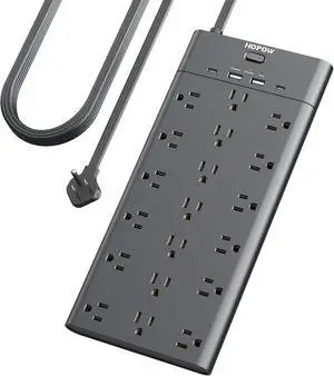 Power Strip Surge Protector with 19 Outlets and 4 USB Ports, HOPOW 10 Ft Flat Plug Heavy Duty Extension Cord, 1875W, 2100J Surge Protection, Wall Mount for Home, Office, Gaming Room, Dorm, Black