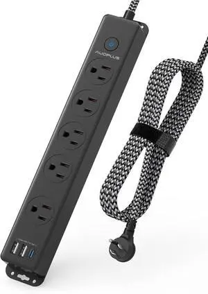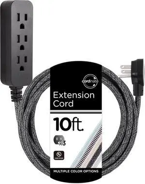Cordinate 3 Outlet Power Strip Surge Protector Indoor Extension Cord 16 Gauge 245 Joules 10 Ft 3 Prong Braided Extension Cords Flat Extension Cord ETL Listed Gray 43013