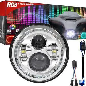7 Inch LED Headlight for HD Street Glide Special, with Cellphone Bluetooth Controlled Multicolor Angel Eye, Road King Special Headlight Hi-Lo Beam Projector with RGB Music Mode Halo,(Chrome)