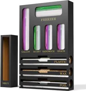 9 IN 1 Bamboo Foil and Plastic Wrap Organizer for Kitchen Drawer, Plastic Bag Organizer Organization and Storage, Food Storage Bag Organizer (BLACK)