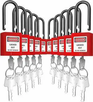 Lockout Tagout Locks Loto Safety Padlock, Keyed Differently, OSHA Loto Safe Padlocks for Lock Out Tag Out Stations and Devices Red NO. 1-10