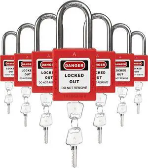 Lockout Tagout Locks Set, 7 Red Keyed Alike Unlimited Grouping Safety Padlocks, 2 Keys Per Lock, OSHA Coliant Loto Locks for Lock Out Tag Out Kits