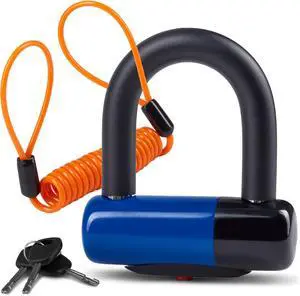 Anti Theft Motorcycle Disc Lock - Heavy Duty Bike Lock with Reminder Cable & Carry Pouch - Universal Fit Disc Brake Lock for Motorbikes, Scooters, and Mopeds (Blue)