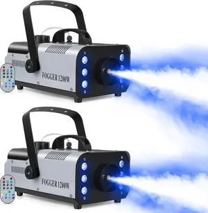 1200W RGB Fog Machine, 6 Colorful LED Lights for Smoke Machine Indoor/Outdoor Use, Perfect for Parties, Weddings, and Stage Effects 2PC