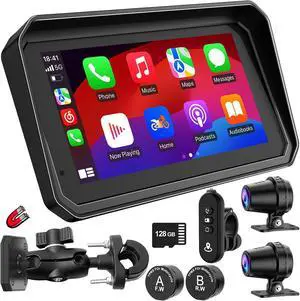 MT600 Pro Portable Motorcycle Dash Cam, Quick-Release Magnetic Bracket, Wireless CarPlay & Android Auto, Motorbike TPMS GPS Navigation, 6" IP67 Waterproof Touchscreen, Free 128G SD Card