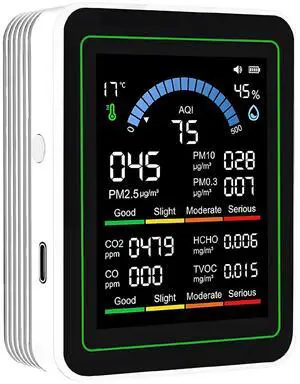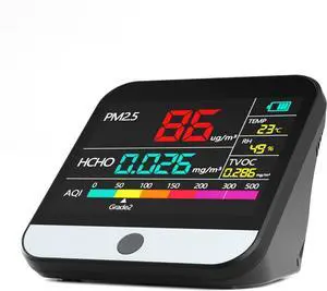 Air Quality Monitor PM2.5 PM10 Particle Counter, Formaldehyde, Temperature, Humidity, TVOC AQI Tester for Indoor/Outdoor Air Pollution Detection w/Data Export