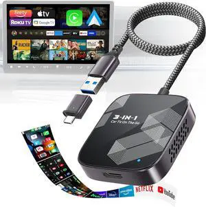3-in-1 Wireless CarPlay Adapter, Car TV Mate Pro Max 2025 Upgraded [Metal & Glass Case] Convert Wired to Wireless ap Car Play/Android Auto or HDMI for Fire TV Stick, Compatible for 2016+ Vehicles