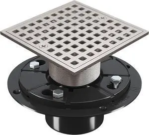 36-Inch Offset Side Outlet Linear Shower Drain with Quadrato Pattern Grate Cover, Brushed 304 Stainless Steel Rectangle Shower Floor Drain, with Leveling Foot, Hair Strainer Catcher