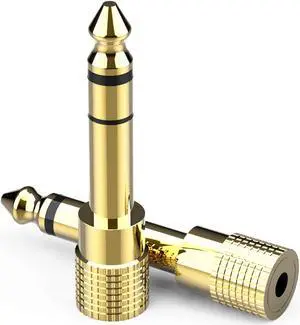 6.35mm (1/4 inch) Male to 3.5mm (1/8 inch) Female Stereo Audio Adapter Converter for Guitar Headphones Amp, Gold Plated 2 Pack