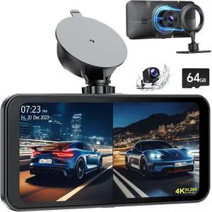6.25'' Wireless Car Stereo for appl e Carplay Screen for Cars Android Auto with 4K Dash Cam Front and Rear, 1080p Backup Camera, GPS, Mirror Link, 24H Parking Monitor/Loop Recording, Siri