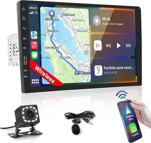 9" Wireless Carplay Car Stereo Single Din Touchscreen Radio Android Auto, Mirror Link, Bluetooth, FM, EQ, SWC, Car Audio Receiver Support USB Phone Charging DVR, with Backup Camera Mic