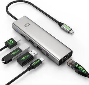 6-in-1 USB-C Hub/Multiport Adapter with 4K 60HZ HDMI, USB C Data Port, 1Gbps Ethernet, 100W Power Delivery, 2 USB 3.0 Port, for MacBook Pro Air M1, iPad Pro Air 2022-2018, XPS