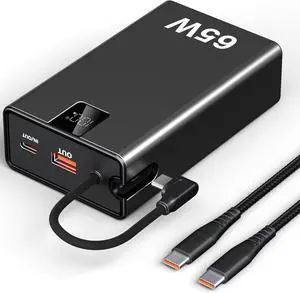 65W Power Bank 27000mAh TSA Approved, USB C Laptop Charger Built-in Cable|Total 130W 3 Ports Fast Charging for MacBook, Steam Deck, iPad Pro | Airplane Safe Battery Pack for Travel, College Students
