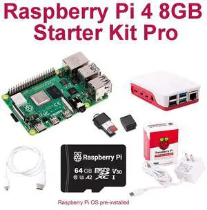 Raspberry Pi 4 Model B 8GB, 64G microSD card, Case, Power Supply-(US), Micro-HDMI to HDMI Cable, microSD to USB adapter (W)