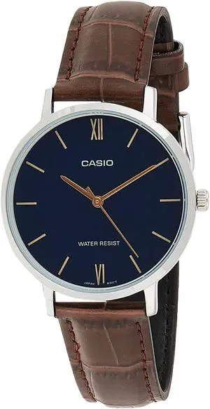 casio LTP-VT01L-2B Womens Minimalistic Blue Dial Brown Leather Band Analog Watch