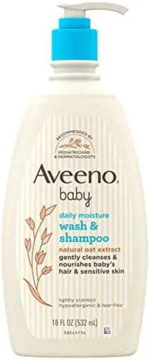 Aveeno Baby Daily Moisture Gentle Body Wash & Shampoo with Oat Extract, 2-in-1 Baby Bath Wash & Hair Shampoo, Tear- & Paraben-Free for Hair & Sensitive Skin, Lightly Scented, 18 fl. oz