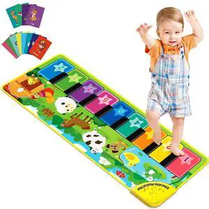 Baby Musical Learning Toys , Floor Piano Playmat for Toddlers with Animal Flash Cards Music Sound for Early Education Touch Keyboard Blanket Birthday for Baby Boys Girls