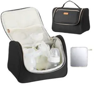 VEVOR Wearable Breast Pump Bag, Breast Feeding Bag with Waterproof Mat, Fits for M5/M6, Pumping Accessories & Breastmilk Storage, Portable Pump Carrying Case for Work, Travel & Family Use, Black