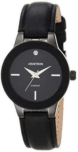 Armitron Womens Japanese Quartz Dress Watch with Leather calfskin Strap, Black, 14 (Model: 755410BKTIBK)