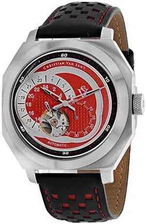 Christian Van Sant Mens Machina Stainless Steel Automatic Leather Strap, Red, 22 Casual Watch (Model: CV0561)