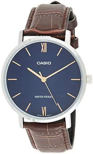 casio MTP-VT01L-2B Mens Minimalistic Blue Dial Brown Leather Band Analog Watch