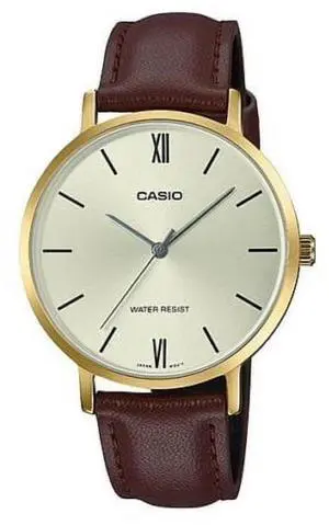 casio LTP-VT01gL-9B Womens Minimalistic gold Tone Brown Leather Band gold Dial 3-Hand Analog Watch
