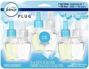 Febreze Plug in Air Fresheners, Linen & Sky, Odor Eliminator for Strong Odors, Scented Oil Refill (3 count)